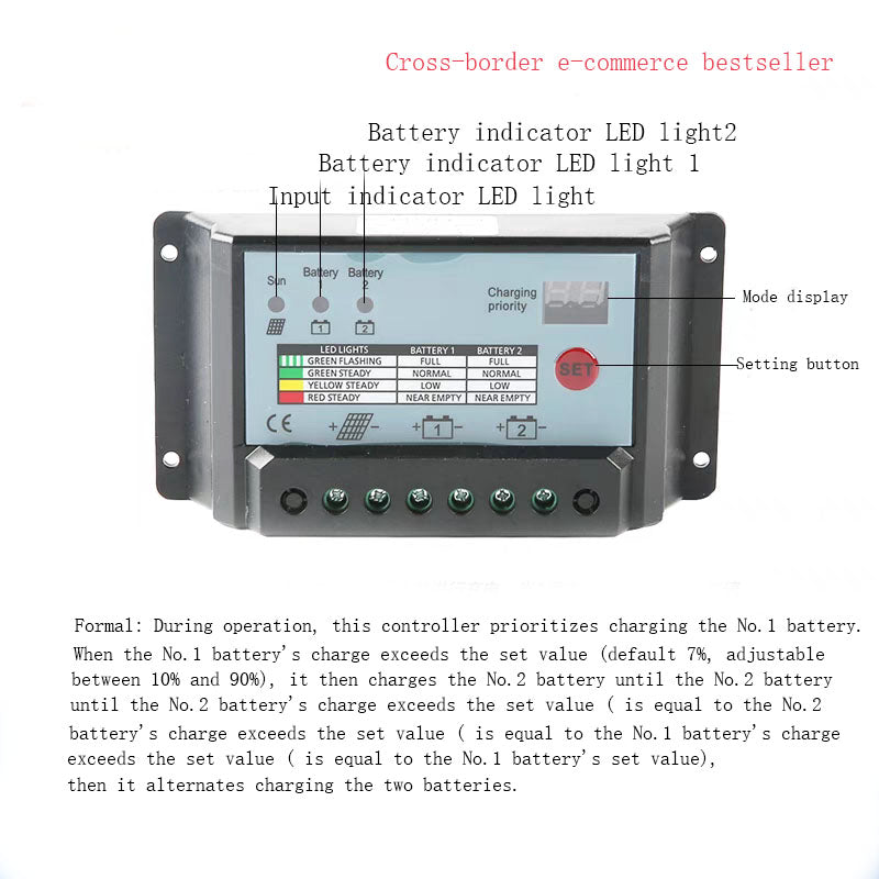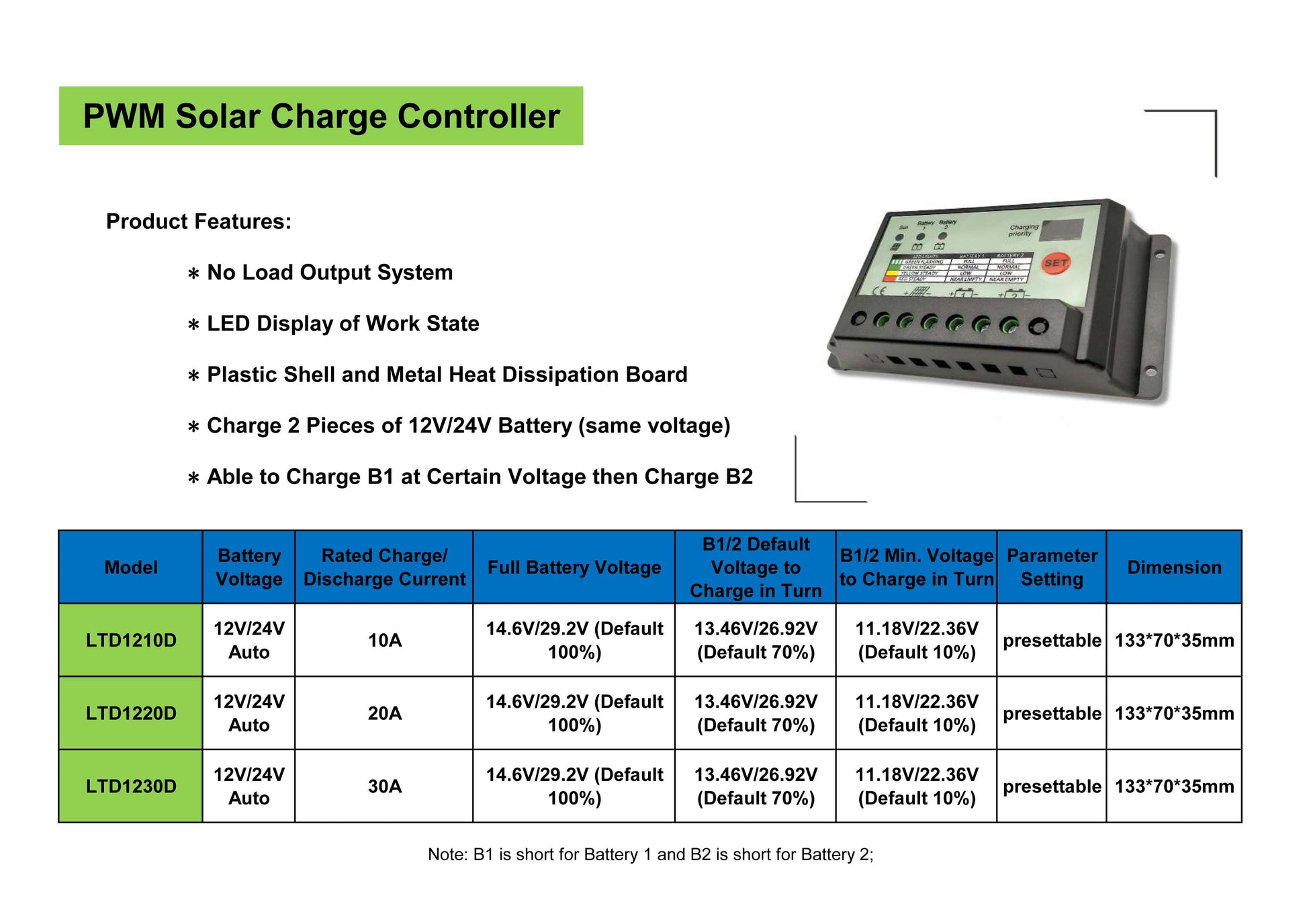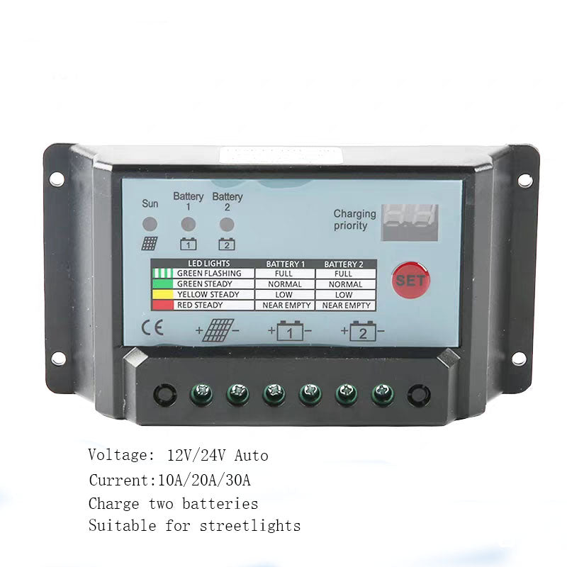 10A~30A solar system controller 12V/24V adaptive dual battery controller