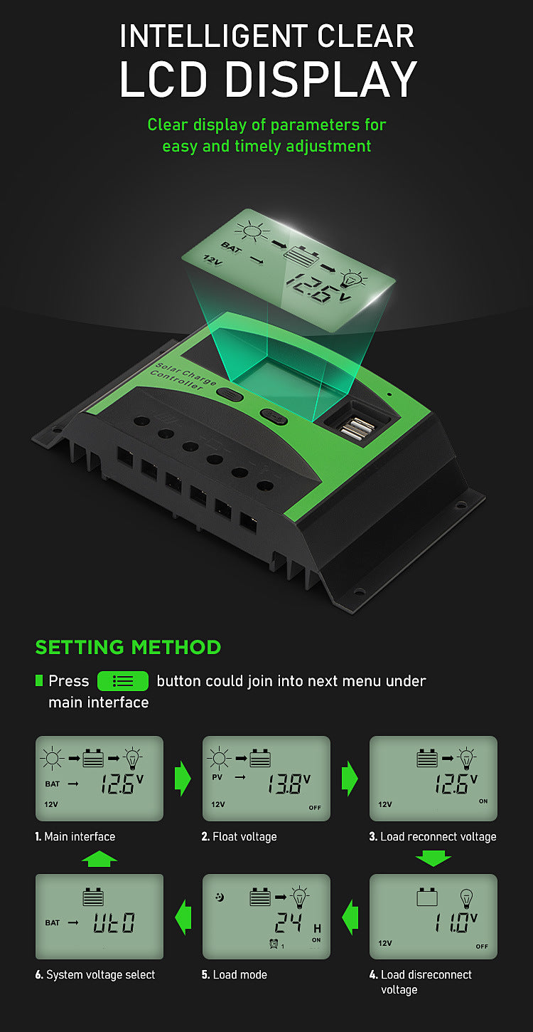 Factory direct supply solar controller 10A 20A30A street light intelligent system charge controller rechargeable lithium battery