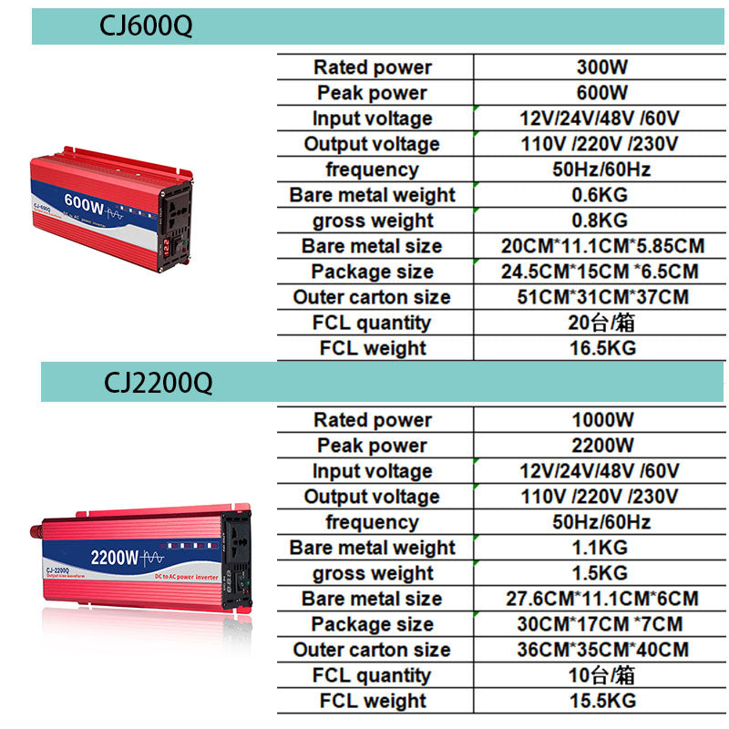High power pure sinusoidal home car inverter 12V/24V/48V/60V to 220Vinverter 2200W