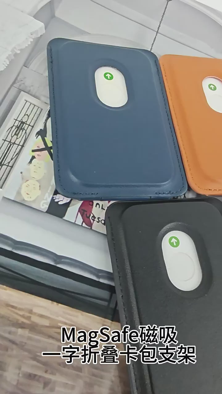 MagSafe magnetic leather card holder phone stand suitable for iPhone 16 with strong magnets and multifunctional features.