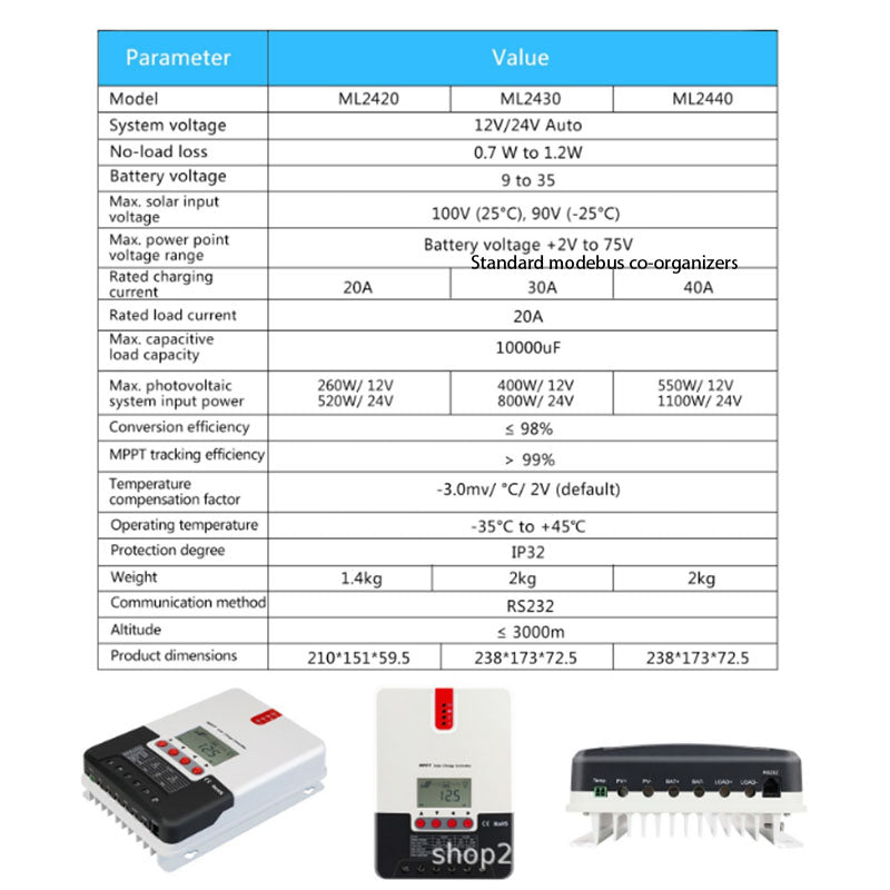 MPPT solar panel controller 30A40A photovoltaic system 12V24Vcan with 485 communication