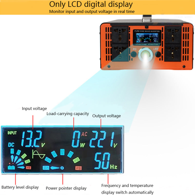 Pure sine wave inverter 12V 24V 48V 60V 72V 96V to 220V for cars, trucks, solar vehicles, and onboard converters 3500W
