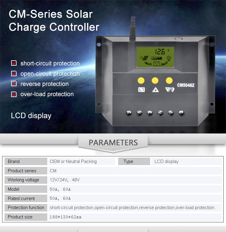 Solar Controller 50A 60A 48V Light Control Smart Solar Charge Controller