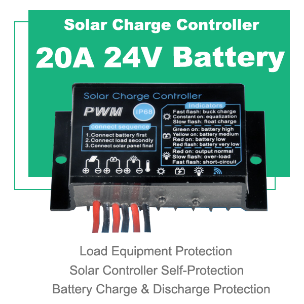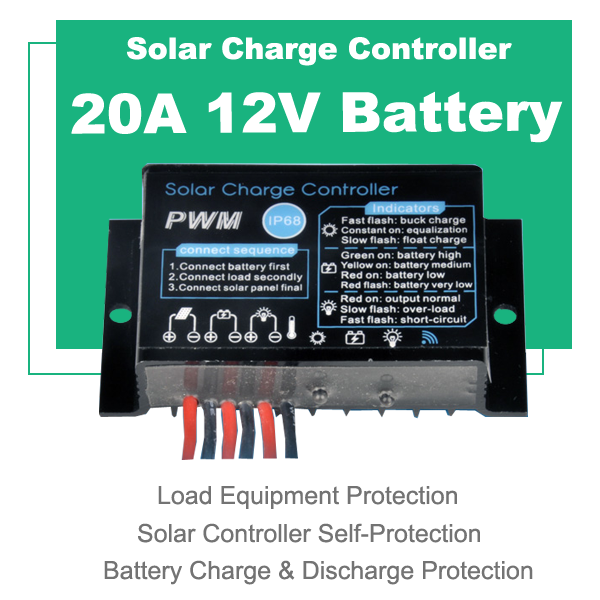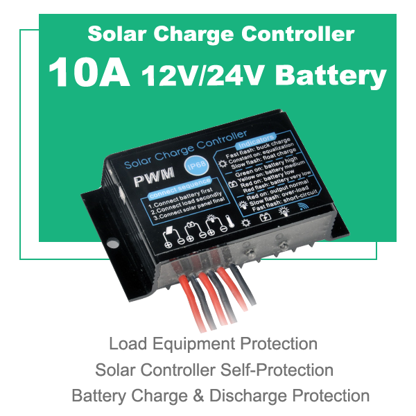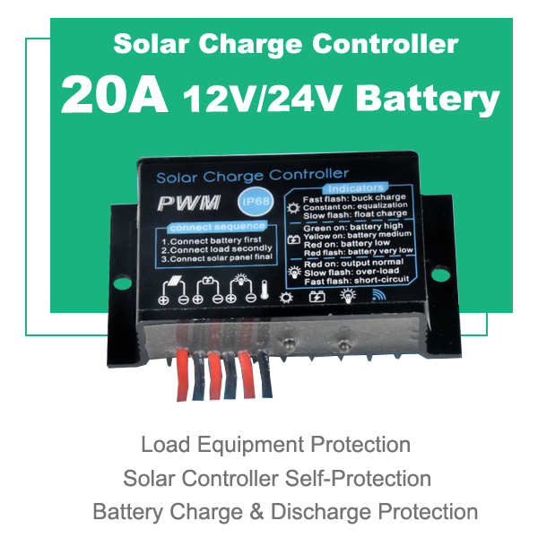 Solar Monitoring Warning Light Charge and Discharge Controller 12V/24V Waterproof 5A~20